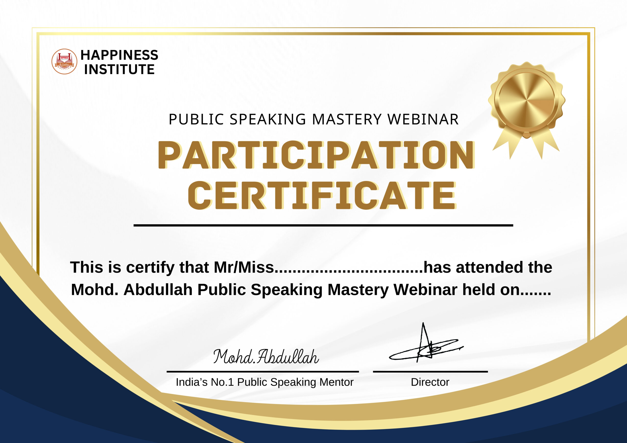 This prestigious workshop, led by renowned public speaking trainer Mohd Abdullah in collaboration with the Happiness Institute, demonstrates your commitment to mastering communication, confidence, and leadership skills.